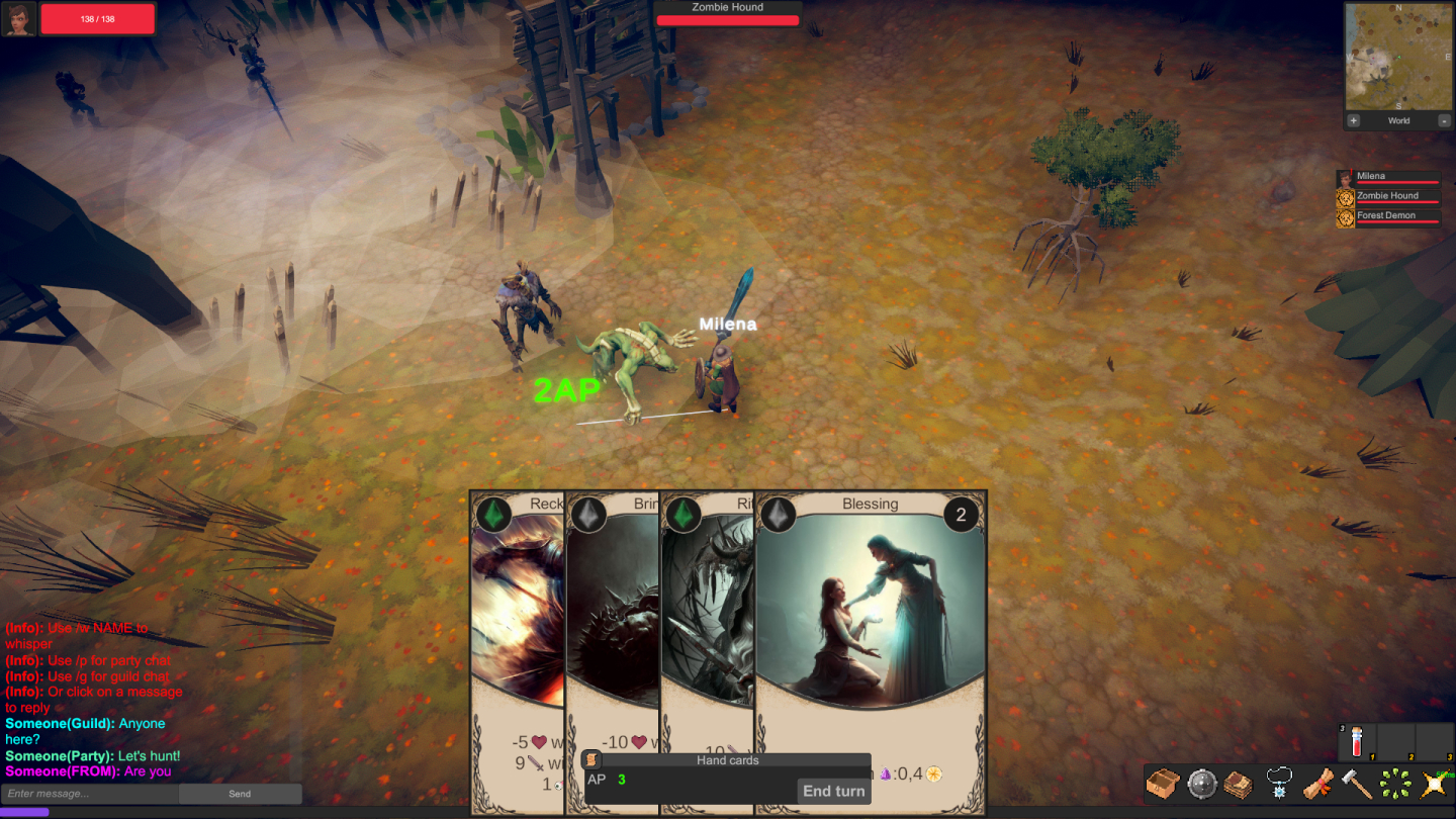 Grama Online is a MMORPG in which you build your deck and fight tactical turn-based combats in a seamless fantasy world.
